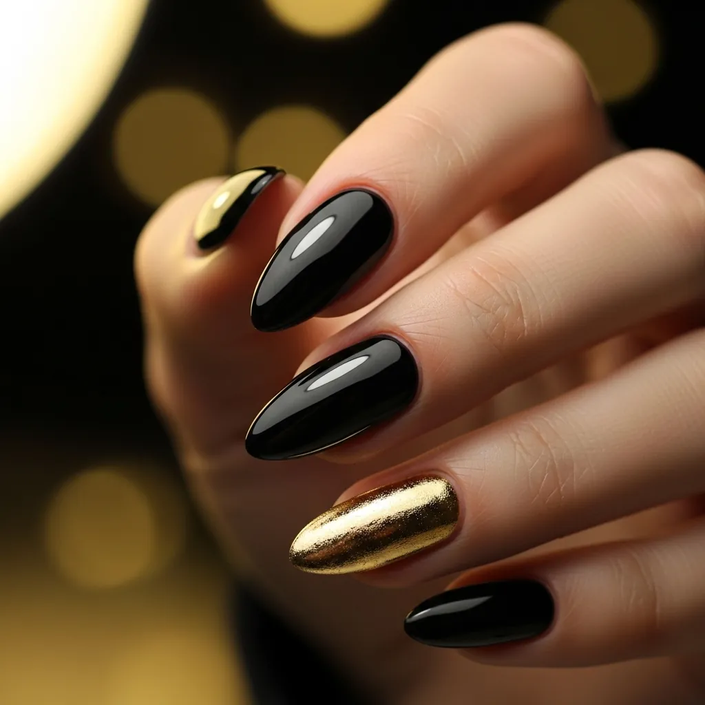 • Matte black almond nails
