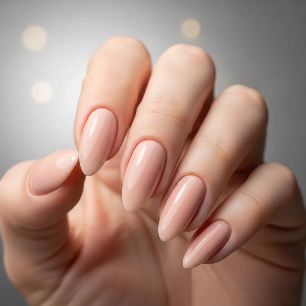 • Soft nude almond nails
