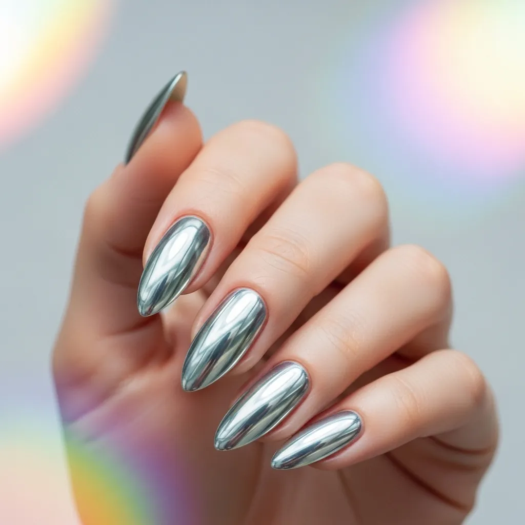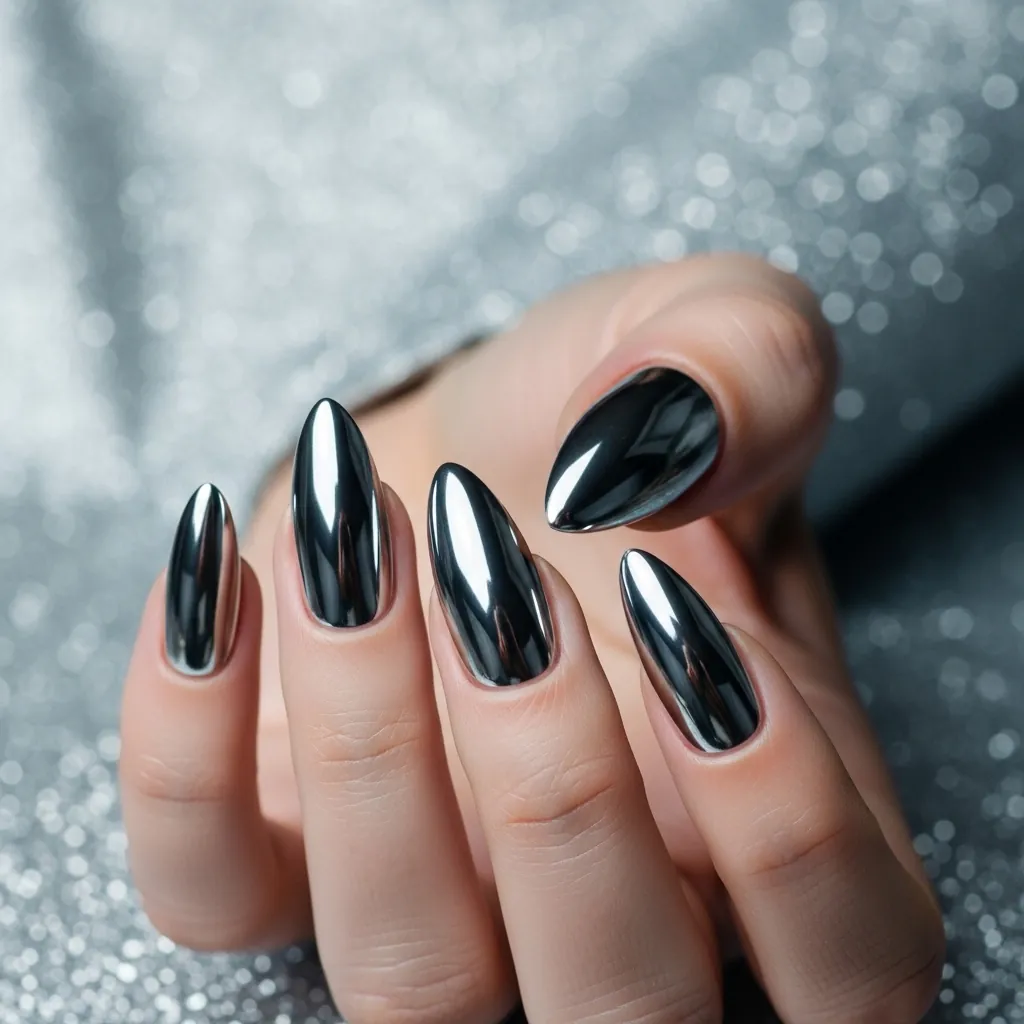 • Silver chrome almond nails