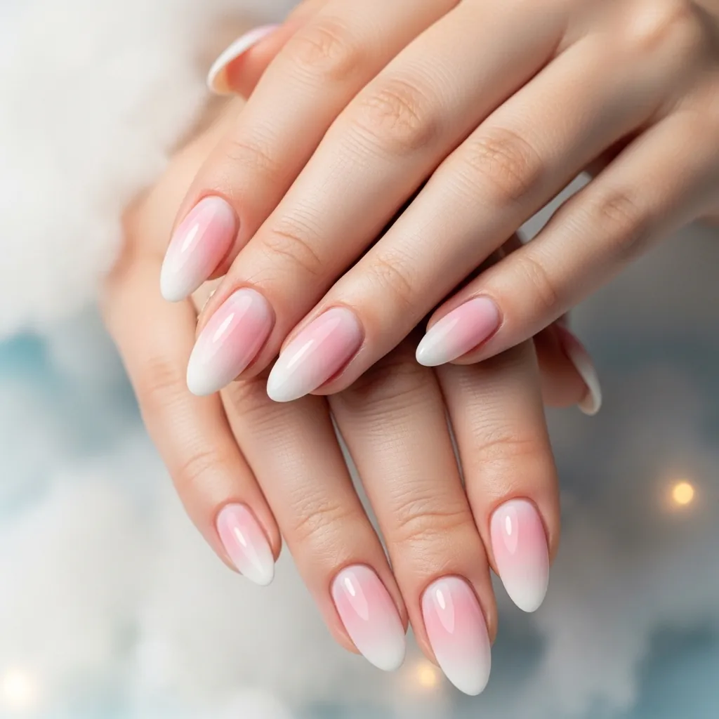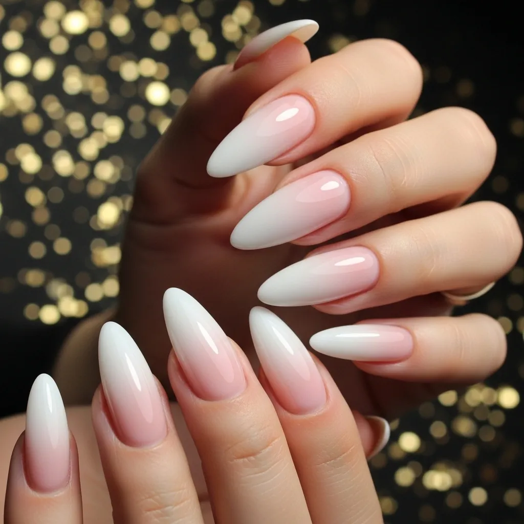 Ombre nails blend two or more colors seamlessly. The almond shape enhances this gradient effect.