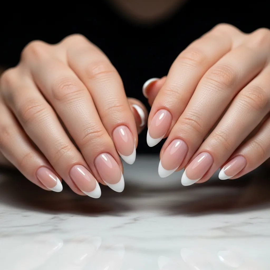 • Classic white French almond nails