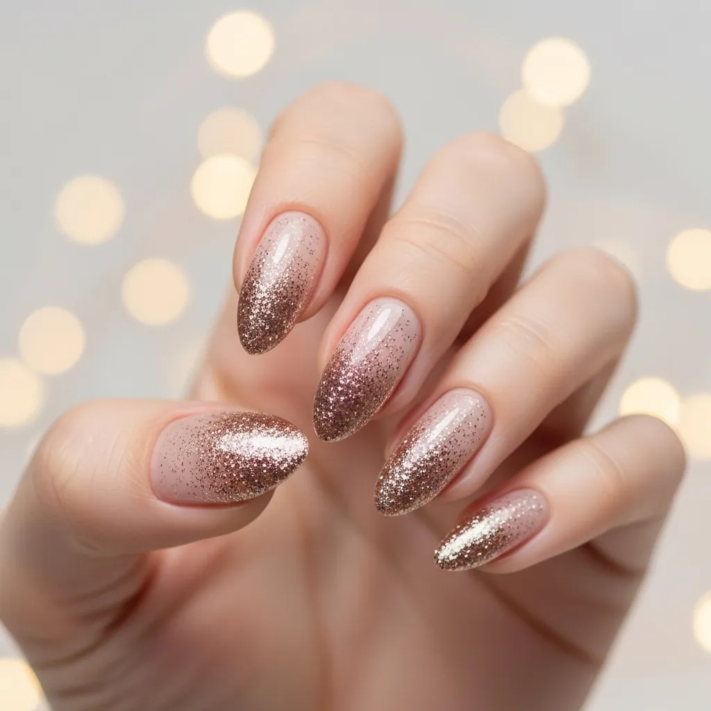 • Glitter ombre almond nails