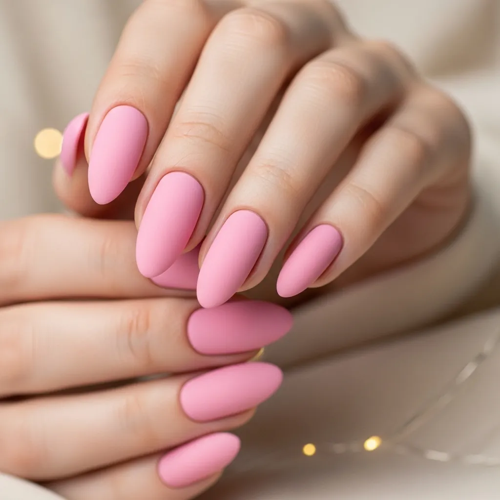 Matte polish removes shine and adds a velvety texture. That texture makes pink look more sophisticated.