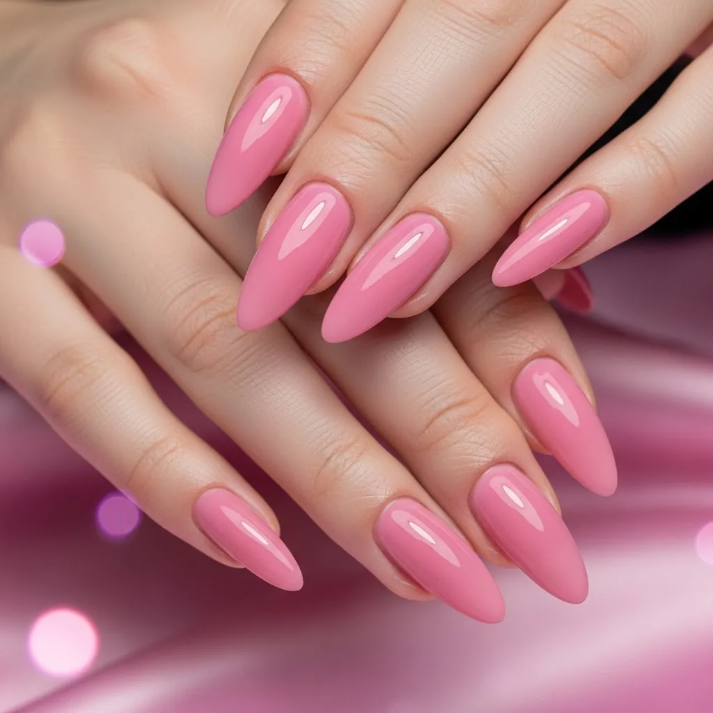 Pink almond nails balance elegance, femininity, and versatility in a way few nail styles can. Whether you choose soft pink, glitter, chrome, or bold hot pink, the almond shape instantly elevates the look.