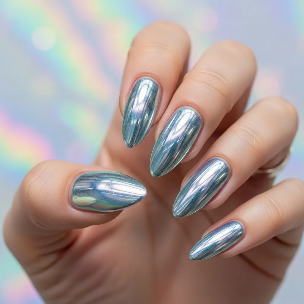 • Chrome almond nails