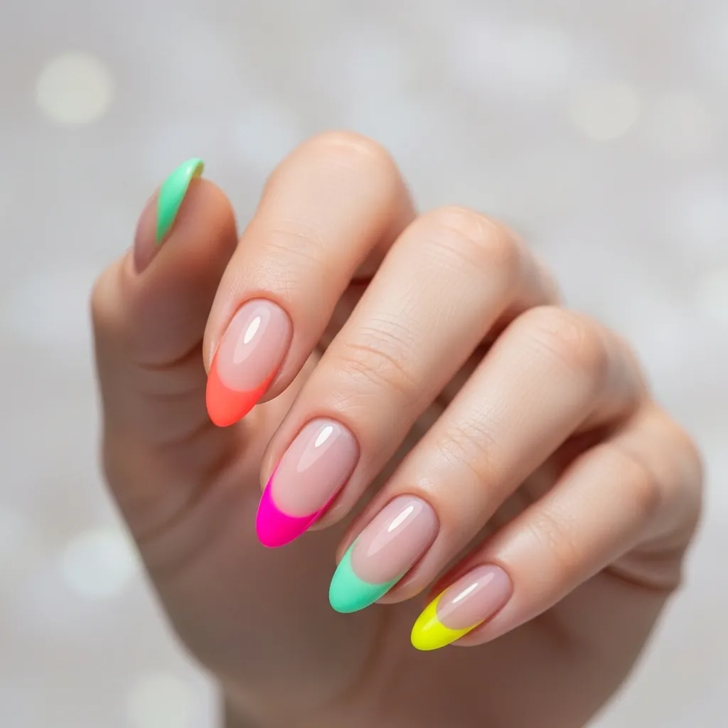 Keep the base milky nude. It makes the bright tips pop beautifully.