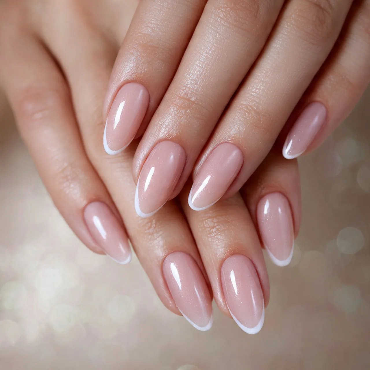 Almond nails soften the straight French line. That curve makes the tip look natural instead of harsh.