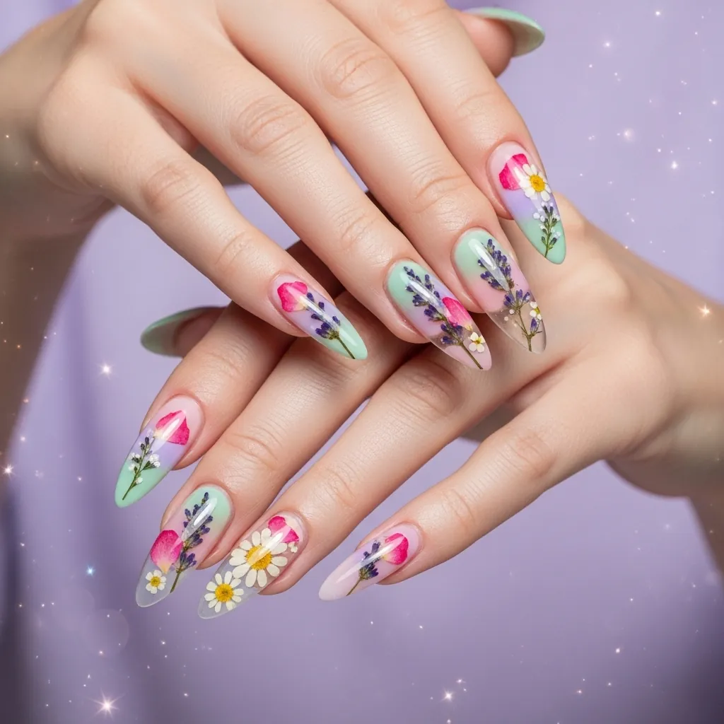 You don’t need complicated nail art to achieve that vibe. Sometimes a simple pastel manicure with tiny flowers looks better than a salon masterpiece.