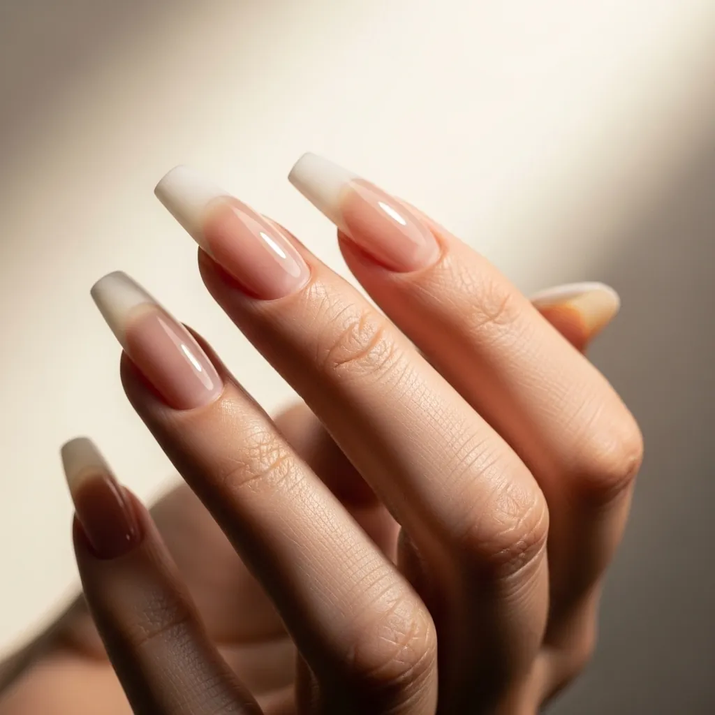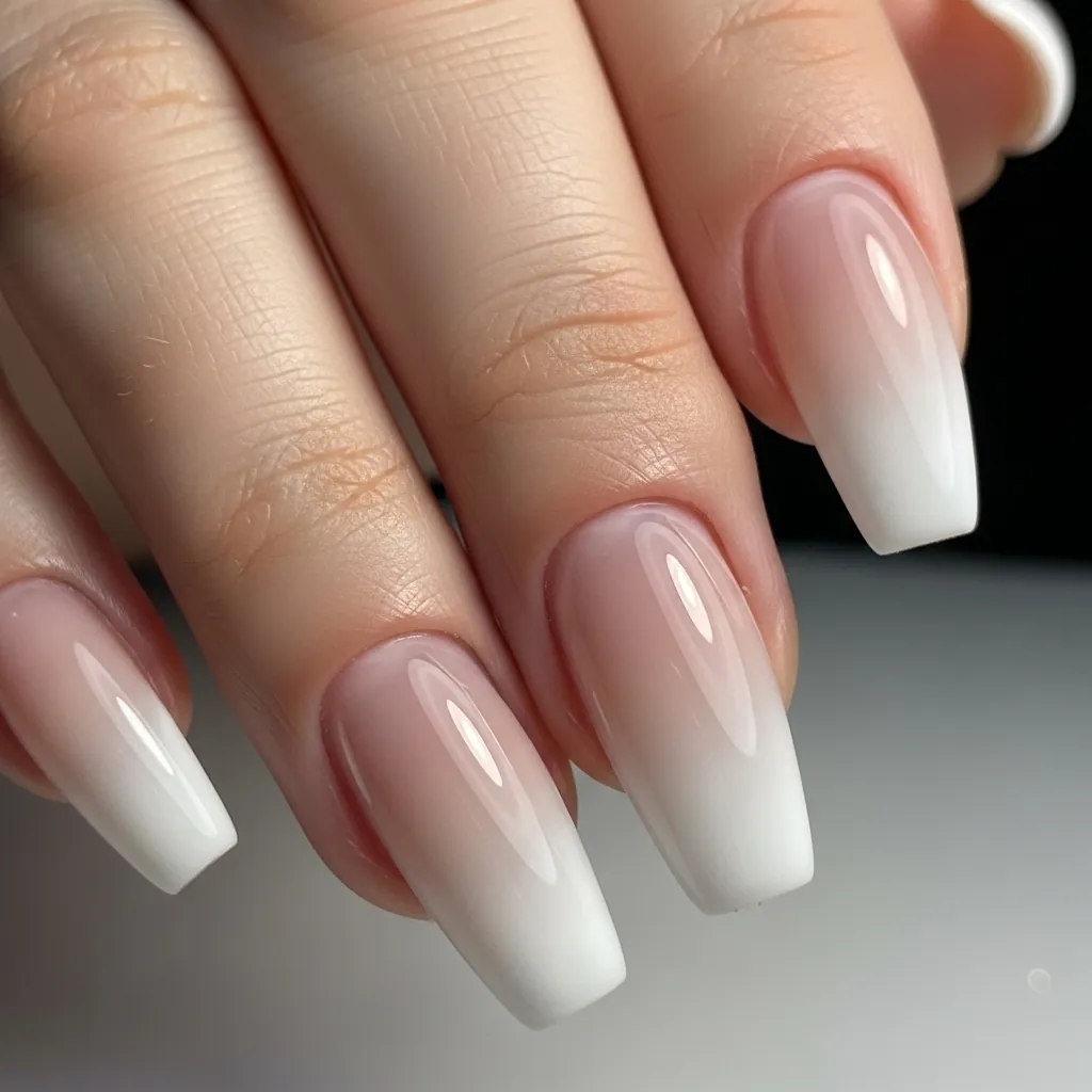 Ombre French tips give a smooth gradient instead of a sharp line.