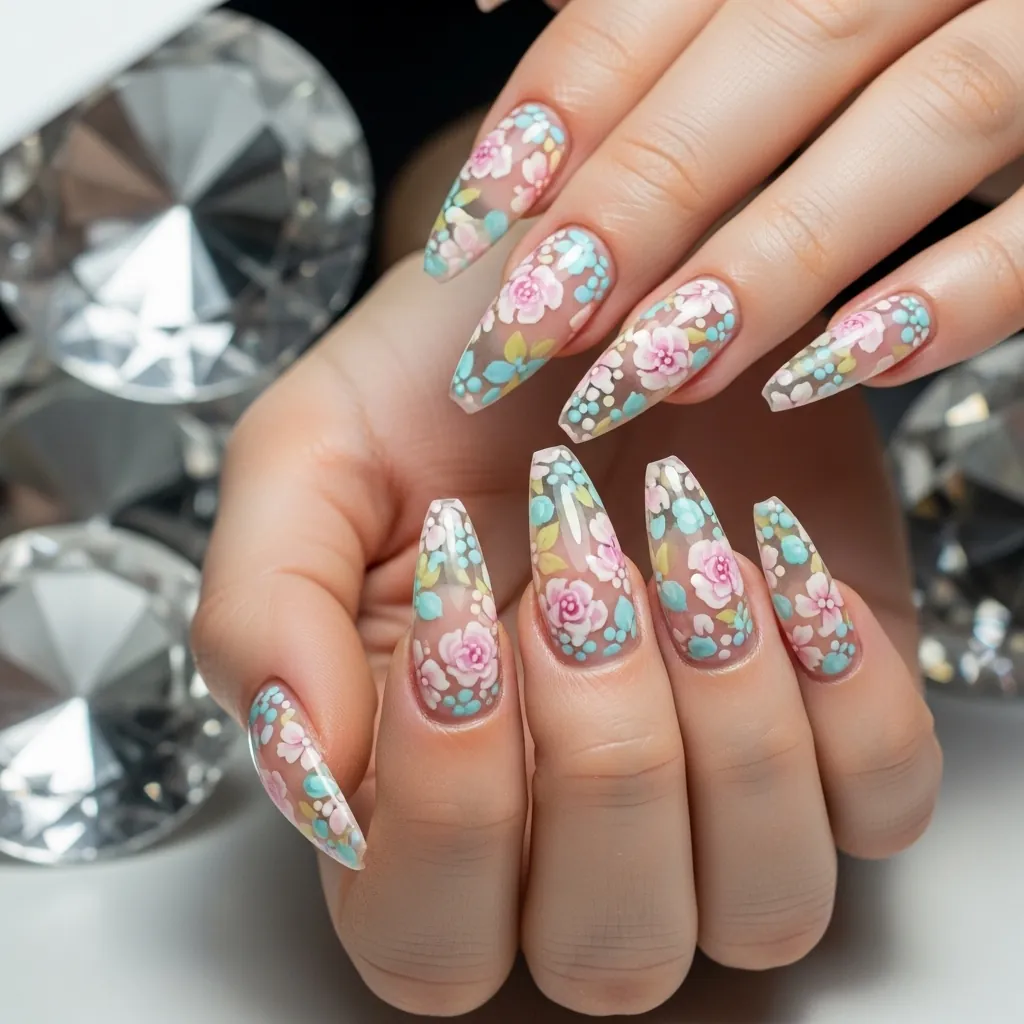 - Long floral acrylics