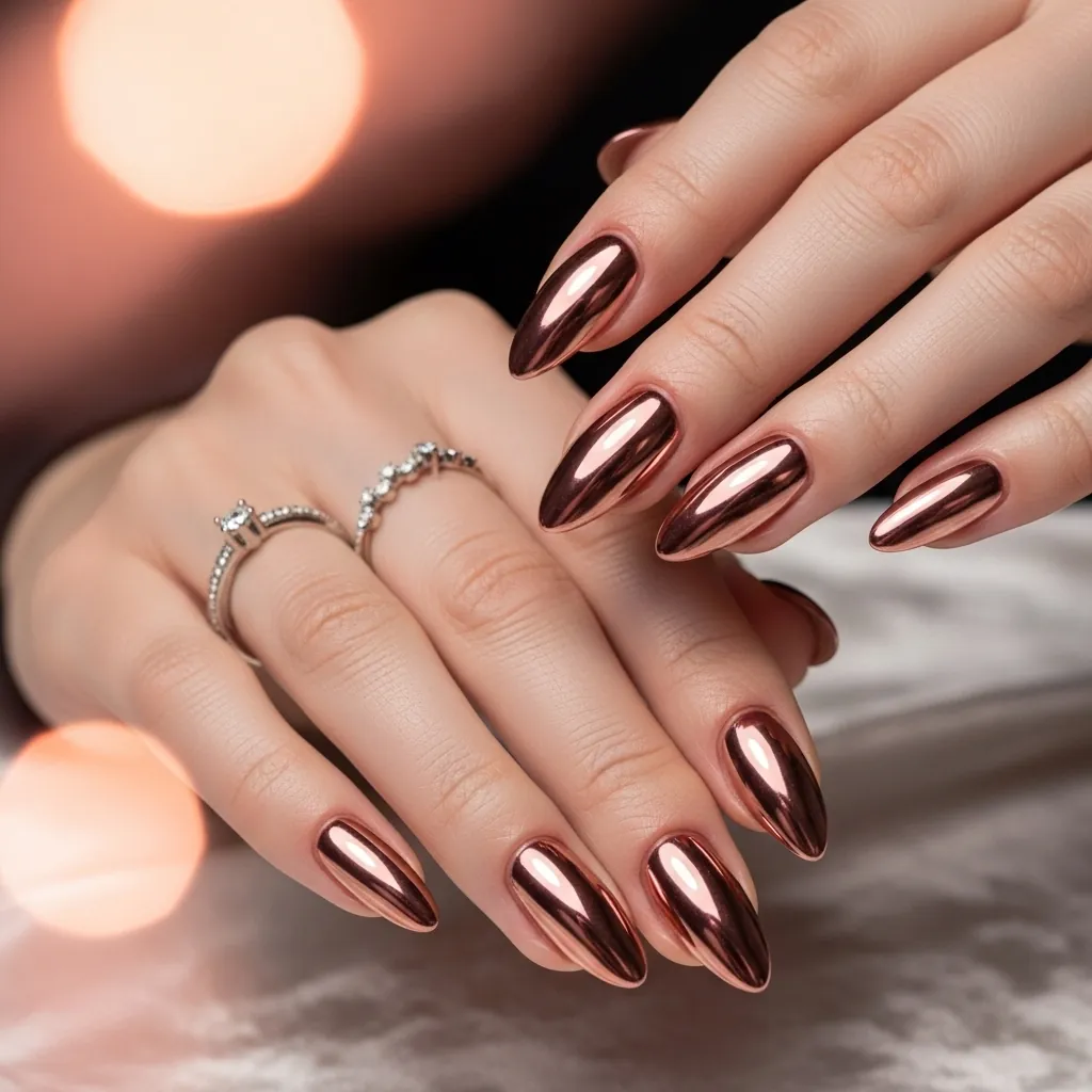 Chrome nails bring futuristic shine to spring styles.