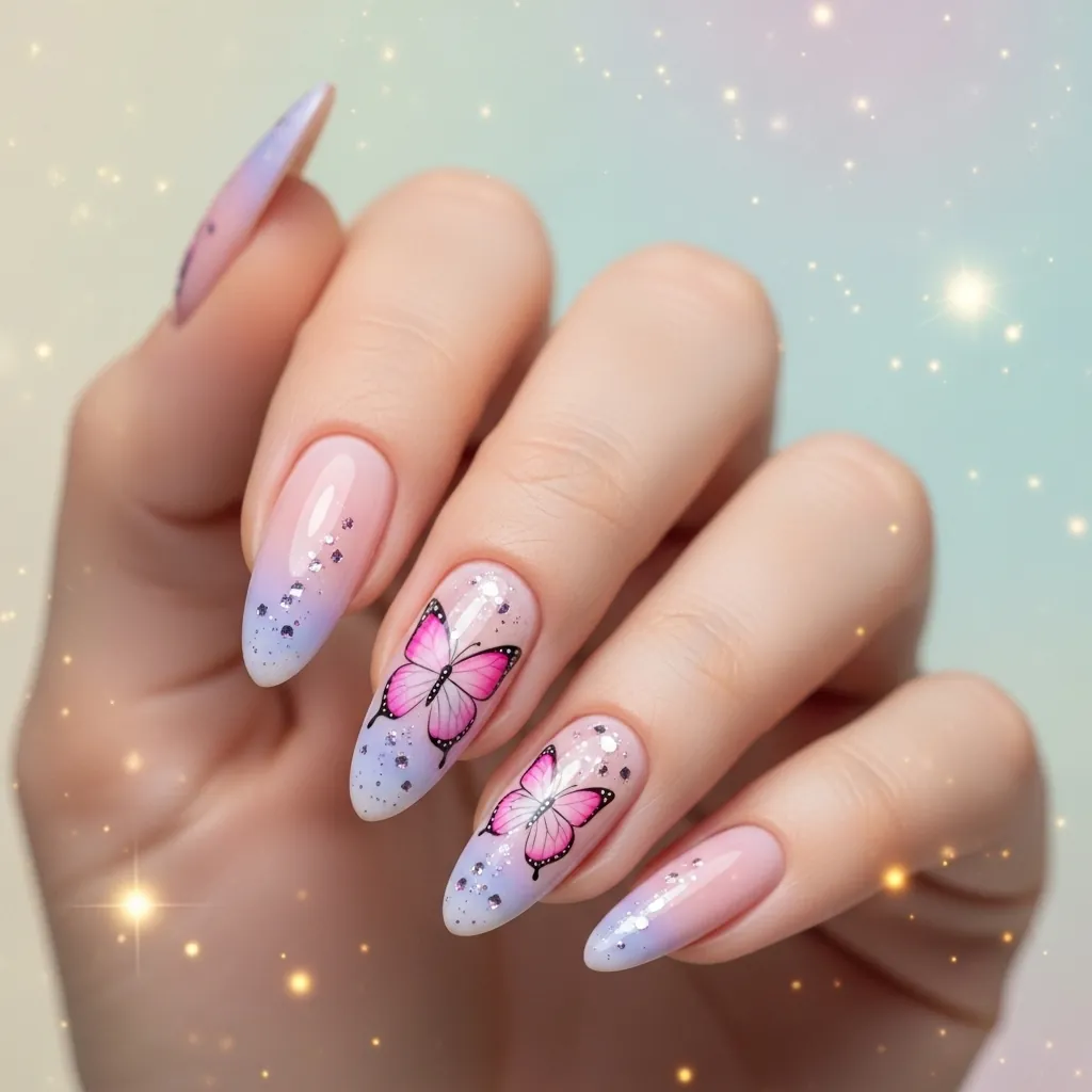 - Glitter butterfly accent nails