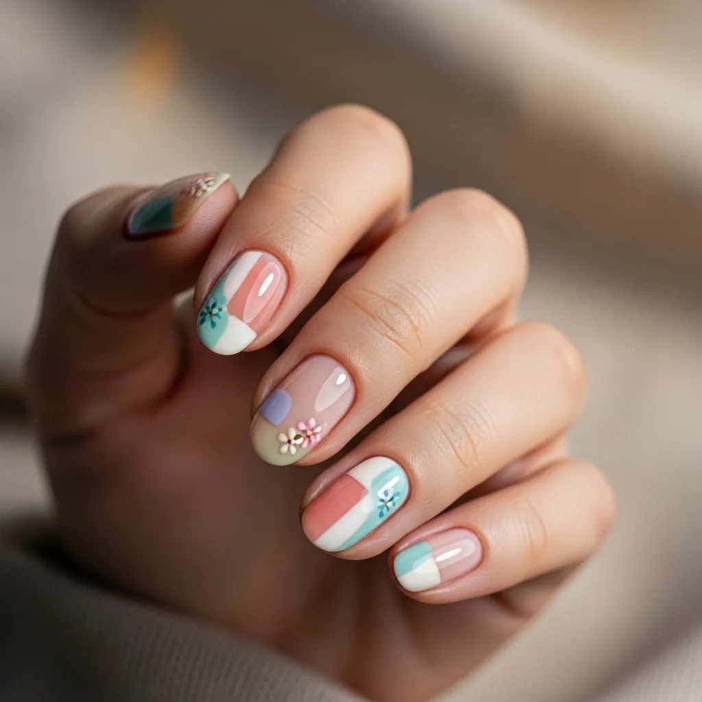I often start with a soft nude or pastel base, then add tiny flowers. It looks elegant without feeling overdone.