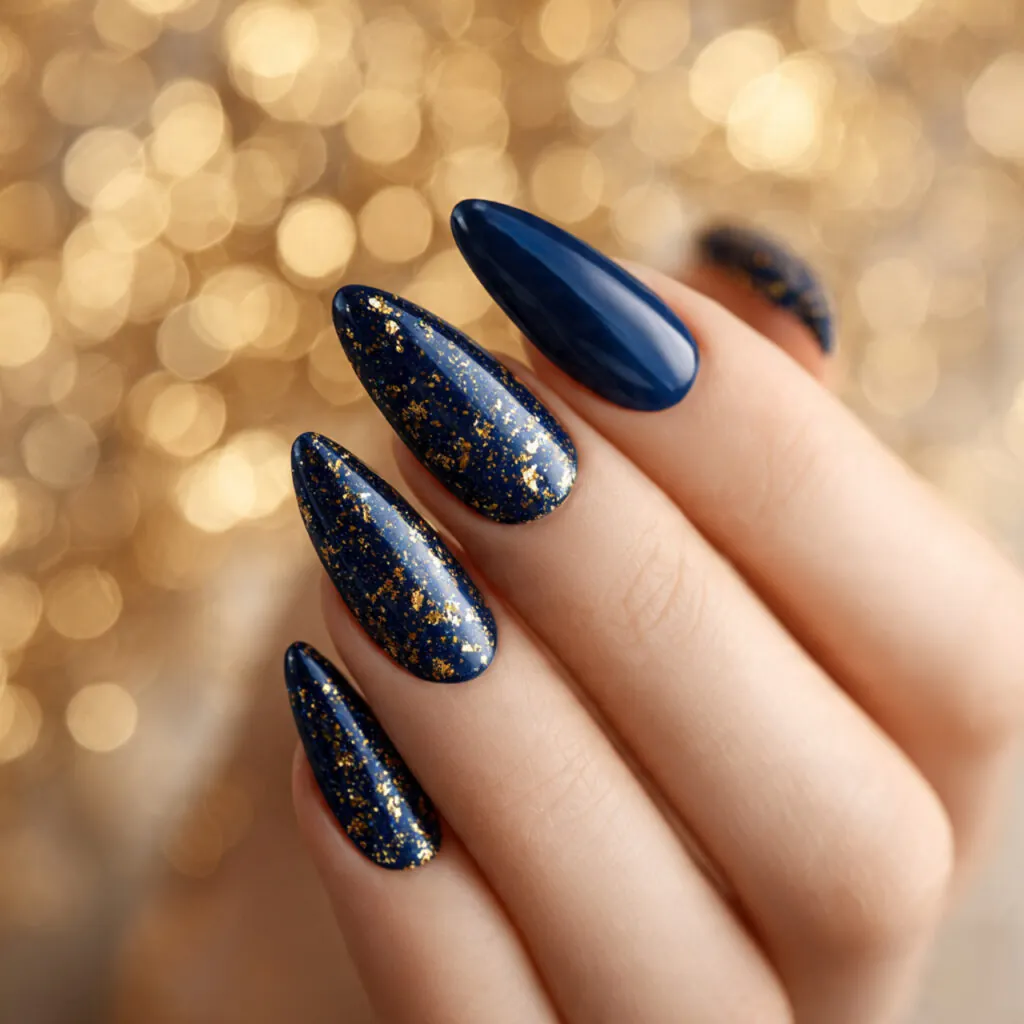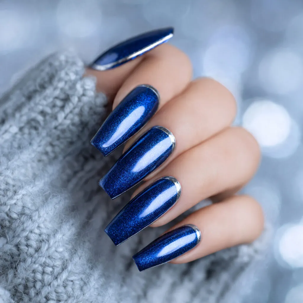 - Want glam luxury? → Blue And Gold or Blue And Silver Nails