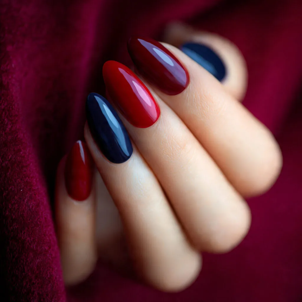Red And Blue Nails create high-impact contrast. You mix fire and ice in one manicure, and the result feels powerful. I once wore glossy red on one hand and navy on the other just for fun—and honestly, I loved the drama.