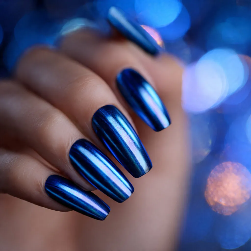 Blue Chrome Nails instantly upgrade basic designs into statement looks.