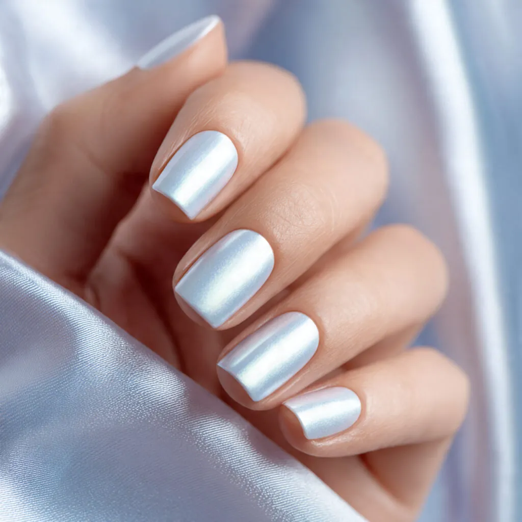 Light blue chrome gives you shine without screaming for attention. I wore this shade last spring and couldn’t stop staring at my hands. It feels airy and clean.