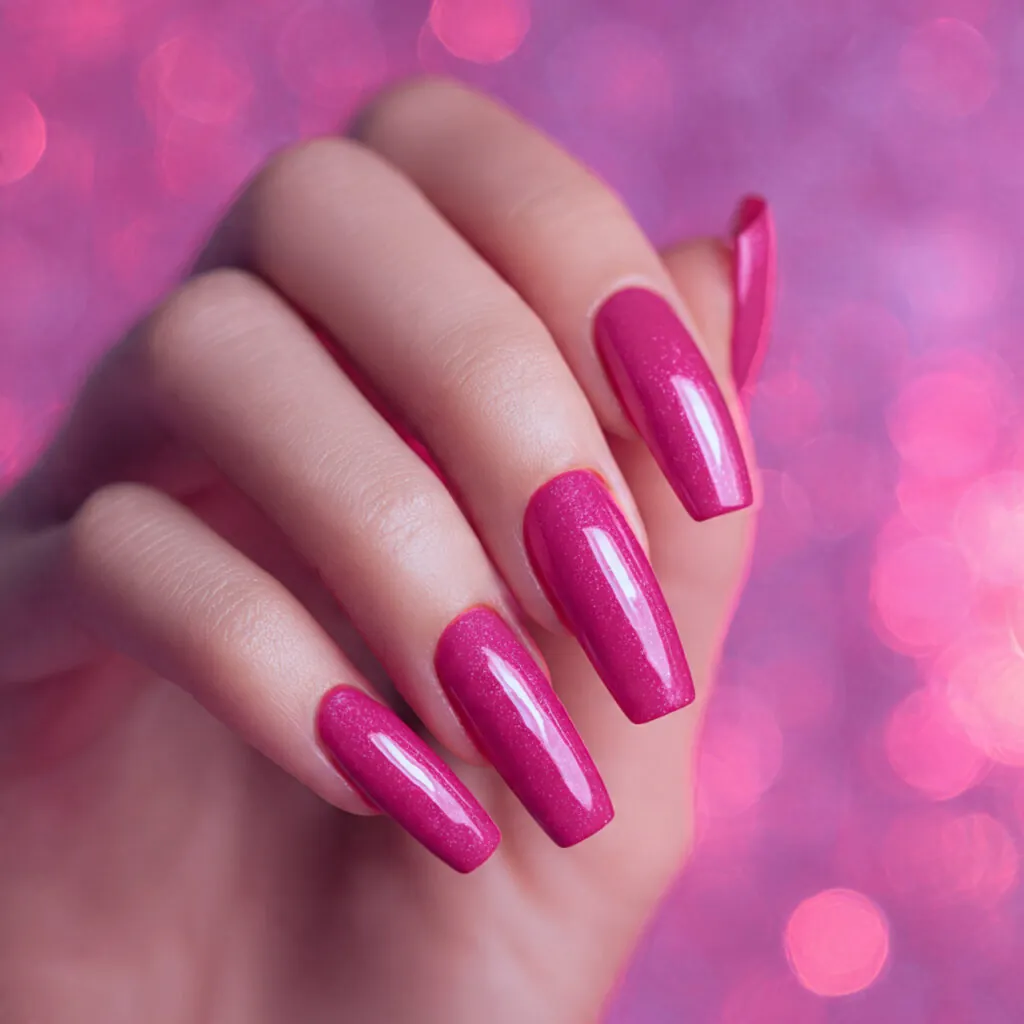 A vibrant, cool-toned pink with playful glamour.