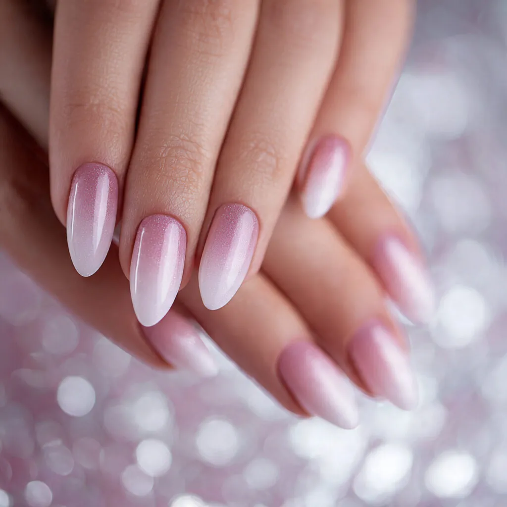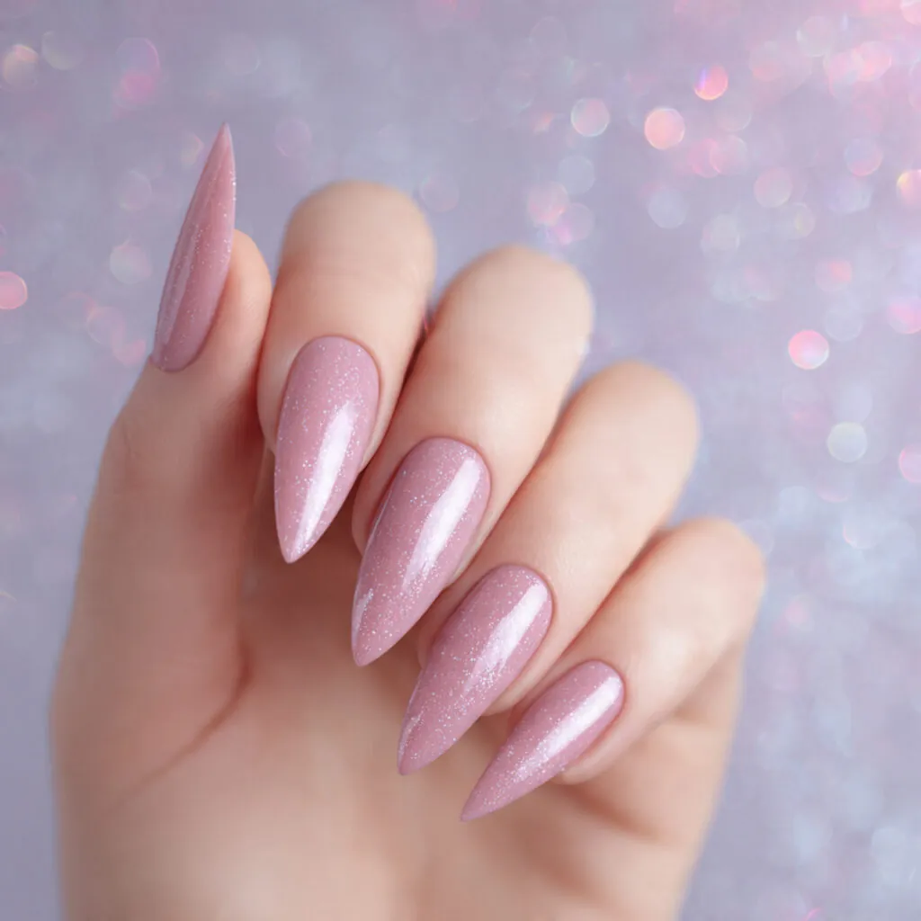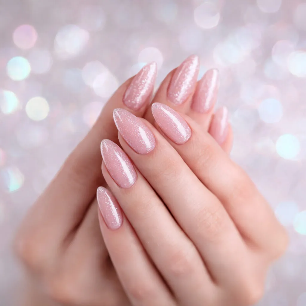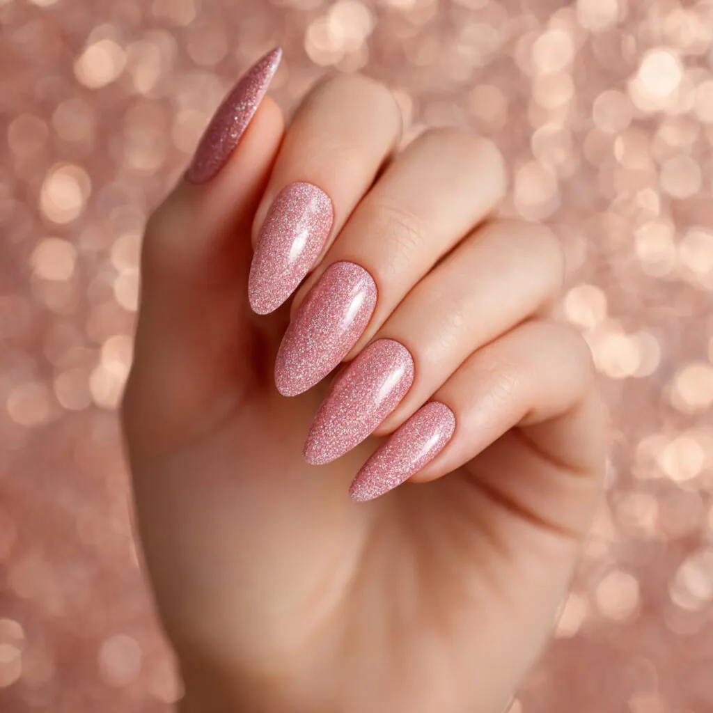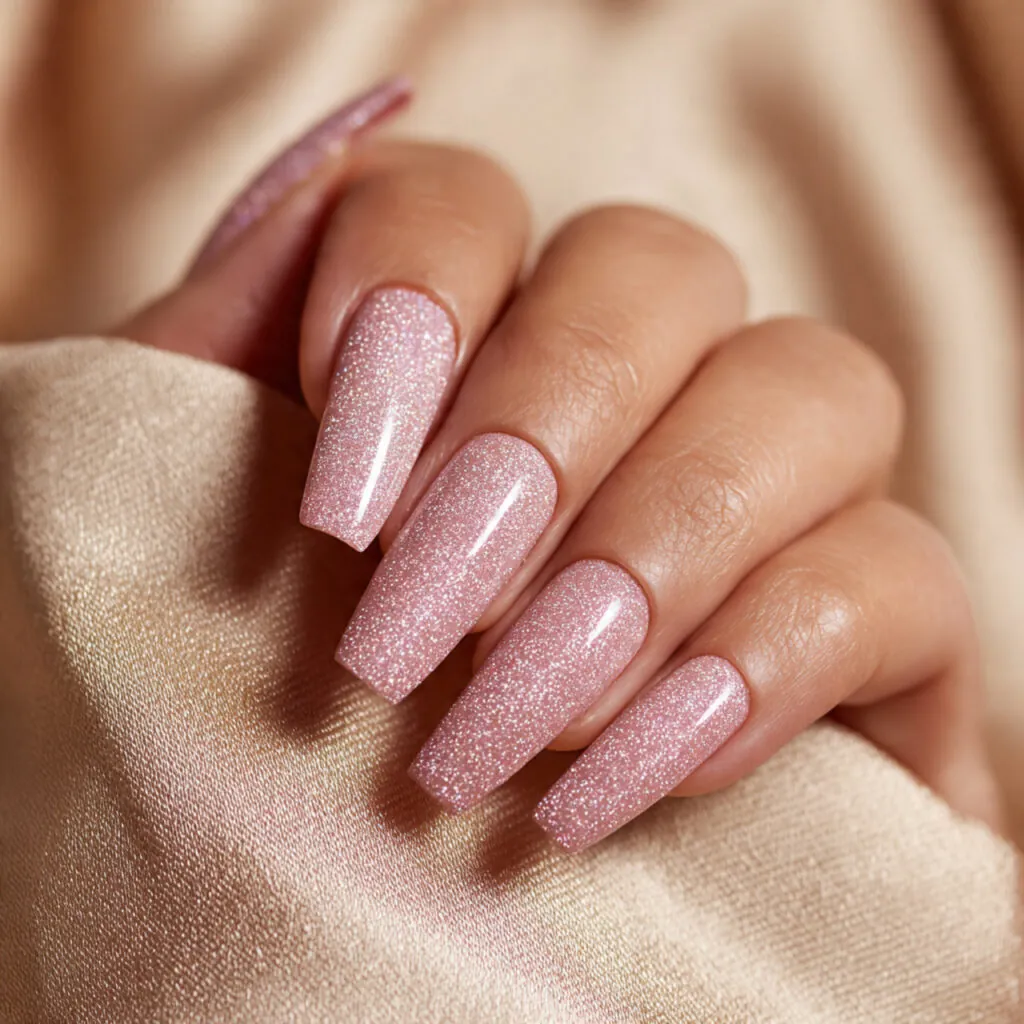 Soft pink with delicate sparkle feels timeless, while brighter pink with subtle chrome adds a modern twist. Precision shaping and symmetry are crucial for a polished prom look.