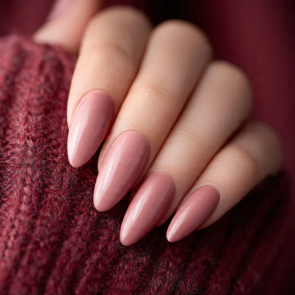 Pink nude nails are the ultimate “clean girl” manicure. They sit between beige nude and soft blush, giving warmth without looking overly pink. On oval and almond shapes, they elongate the fingers naturally. On short square nails, they appear tidy and polished.