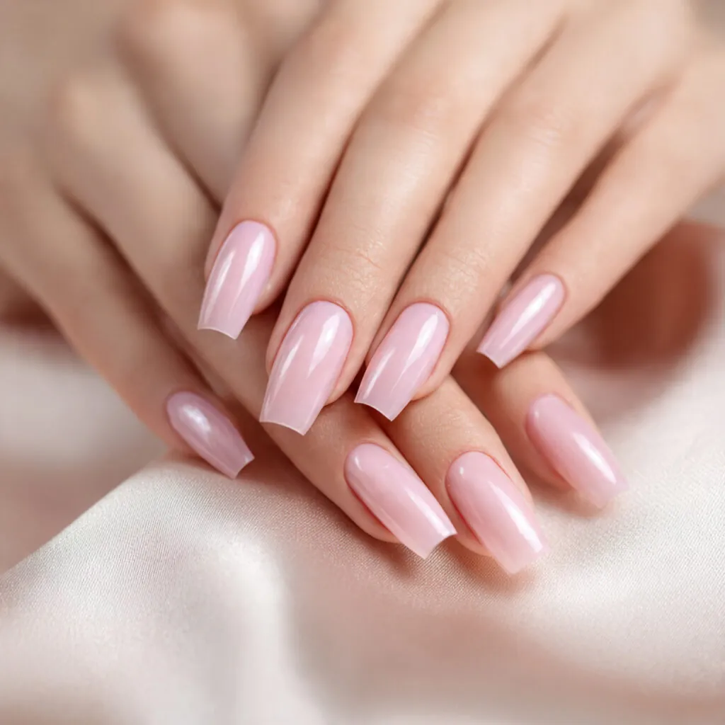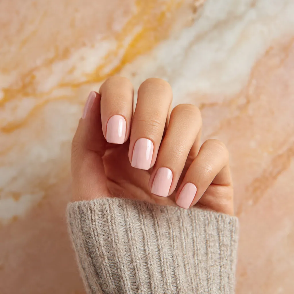 A soft, creamy baby pink finish focused on simplicity and polish.