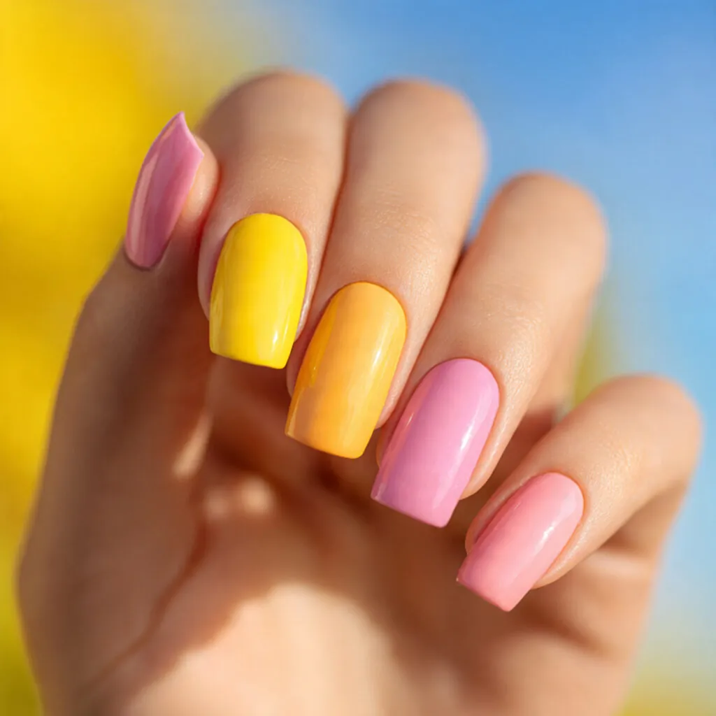Because both colors are strong, structure and spacing matter. Color blocking works well on square shapes, while blended gradients look smoother on almond nails. Proper layering ensures yellow remains opaque over pink.