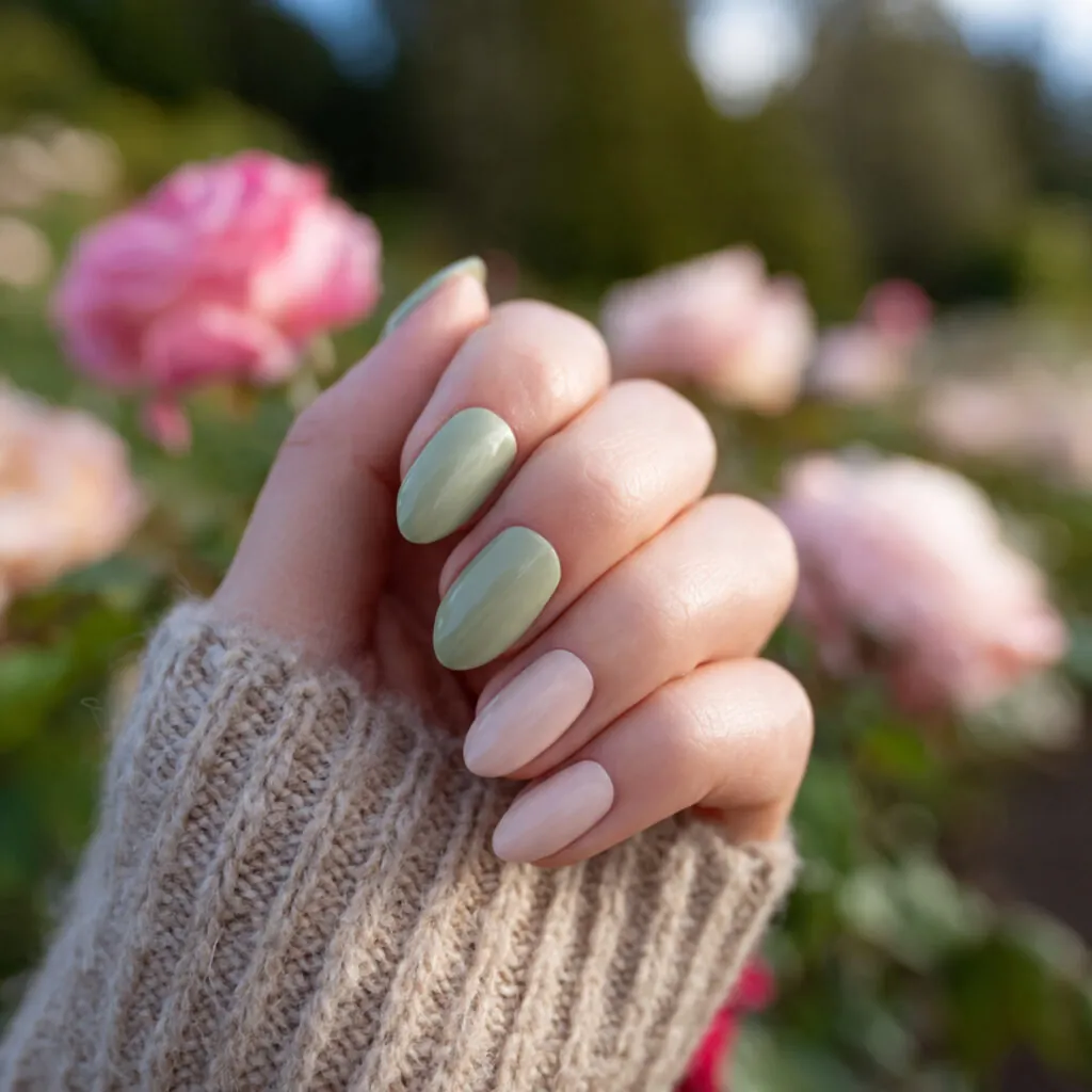 Green and pink nails balance softness with freshness. Sage green paired with soft pink feels modern and understated. Bright green with hot pink creates bold contrast.