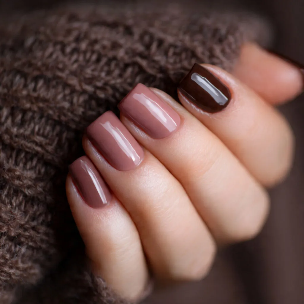 Pink and brown nails offer a sophisticated, grounded aesthetic. Nude pink paired with chocolate brown feels cozy and refined. The warmth of brown tones softens bright pink shades and makes them more wearable.