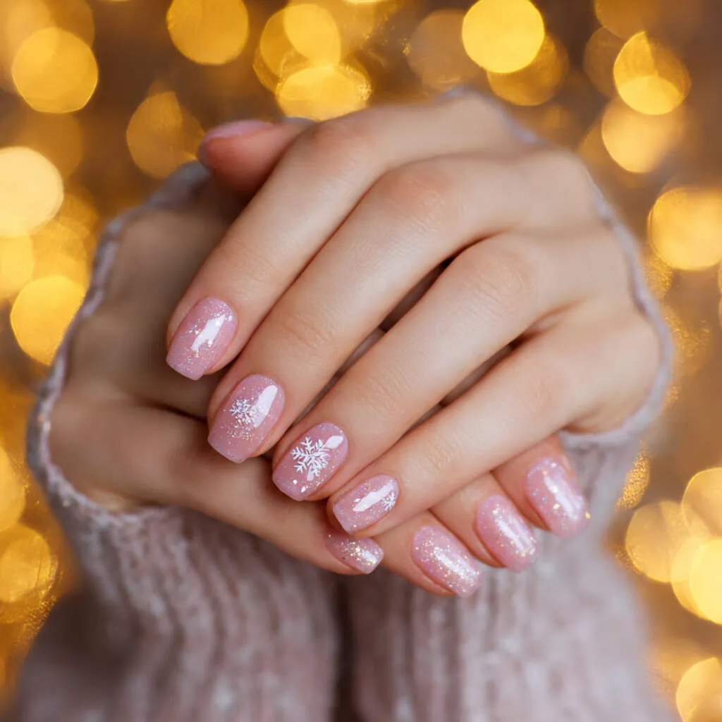 Pink Christmas nails move away from traditional red and green while still feeling festive. Think soft pink with white snowflake accents, glitter overlays, or pink paired with silver shimmer. Hot pink combined with subtle holiday detailing creates a playful twist.