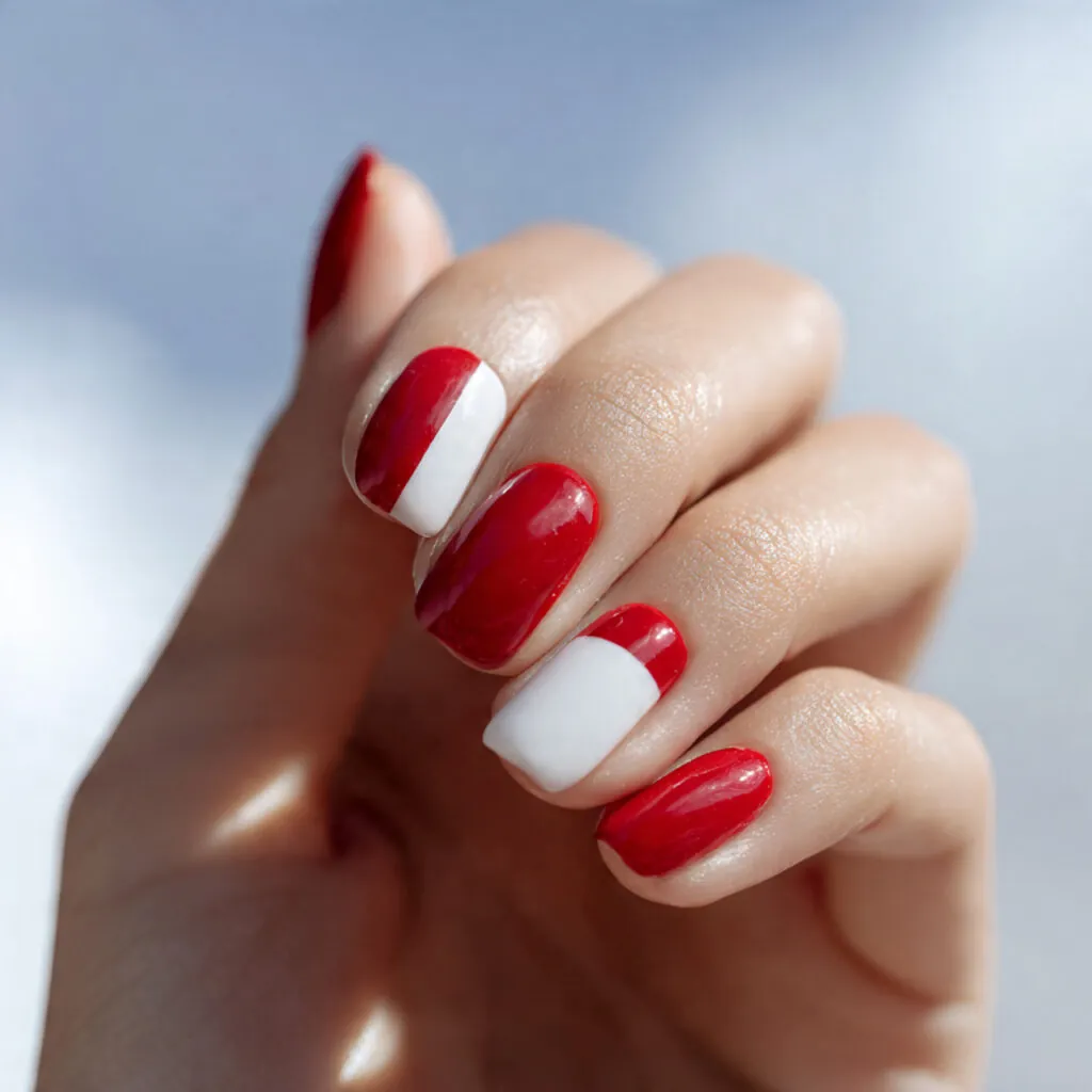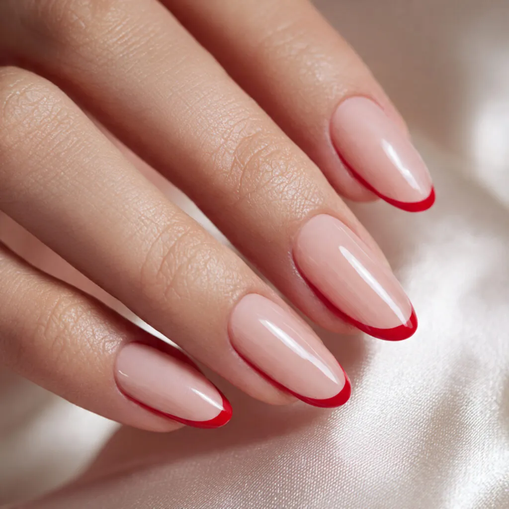 Red French nails feel classic yet updated. The base is typically nude or soft pink, with a red tip.