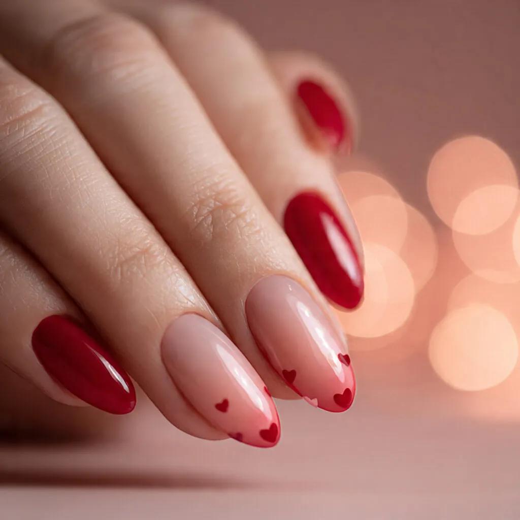 Pink and red nails blend warmth and softness. Choose complementary shades to avoid clashing.
