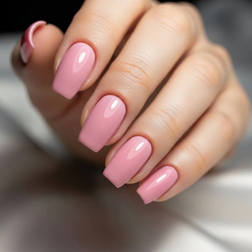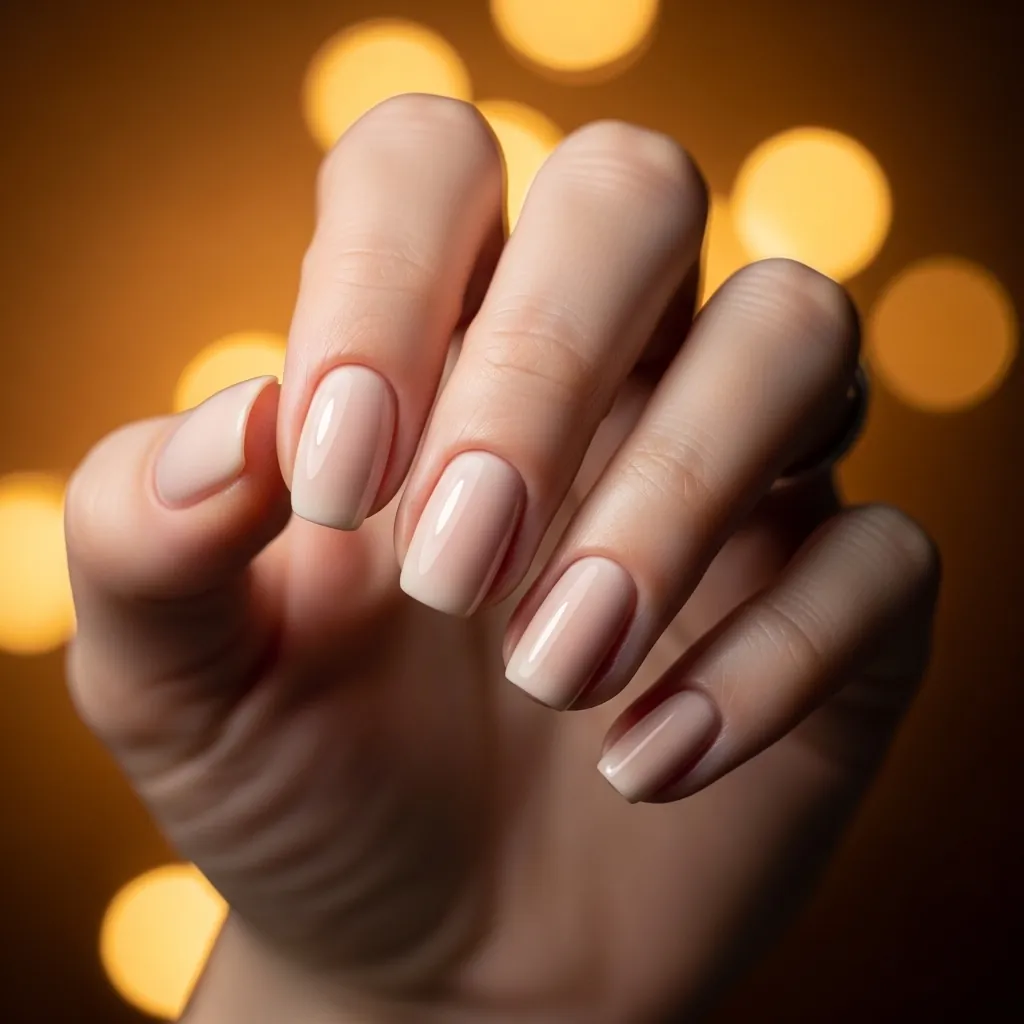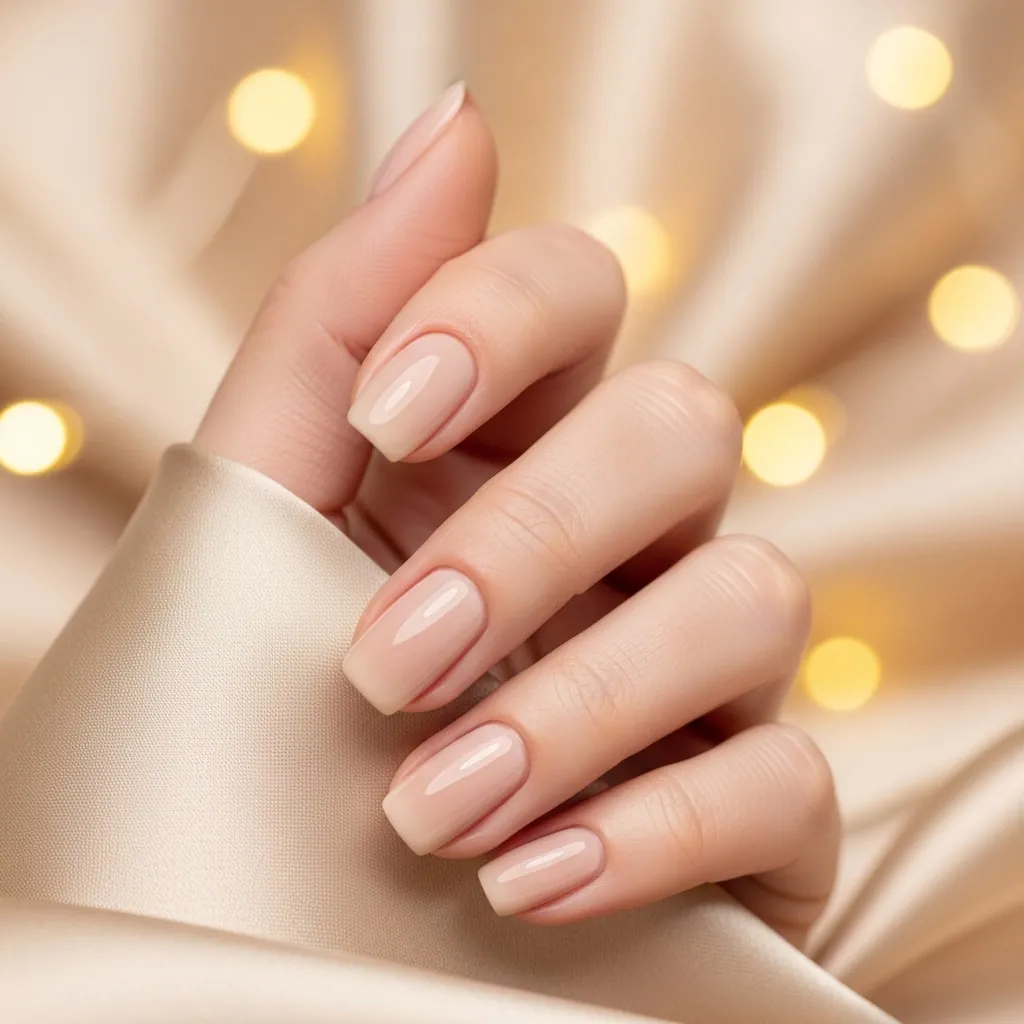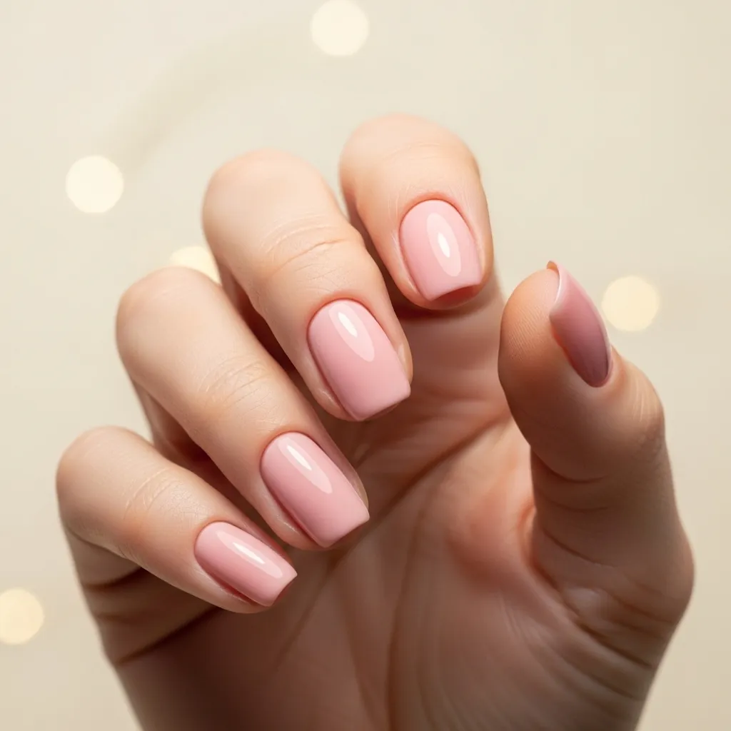- Glossy nude polish for everyday wear