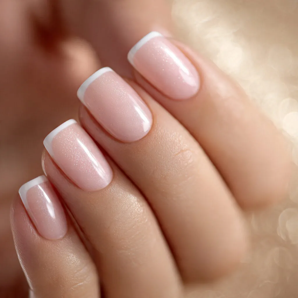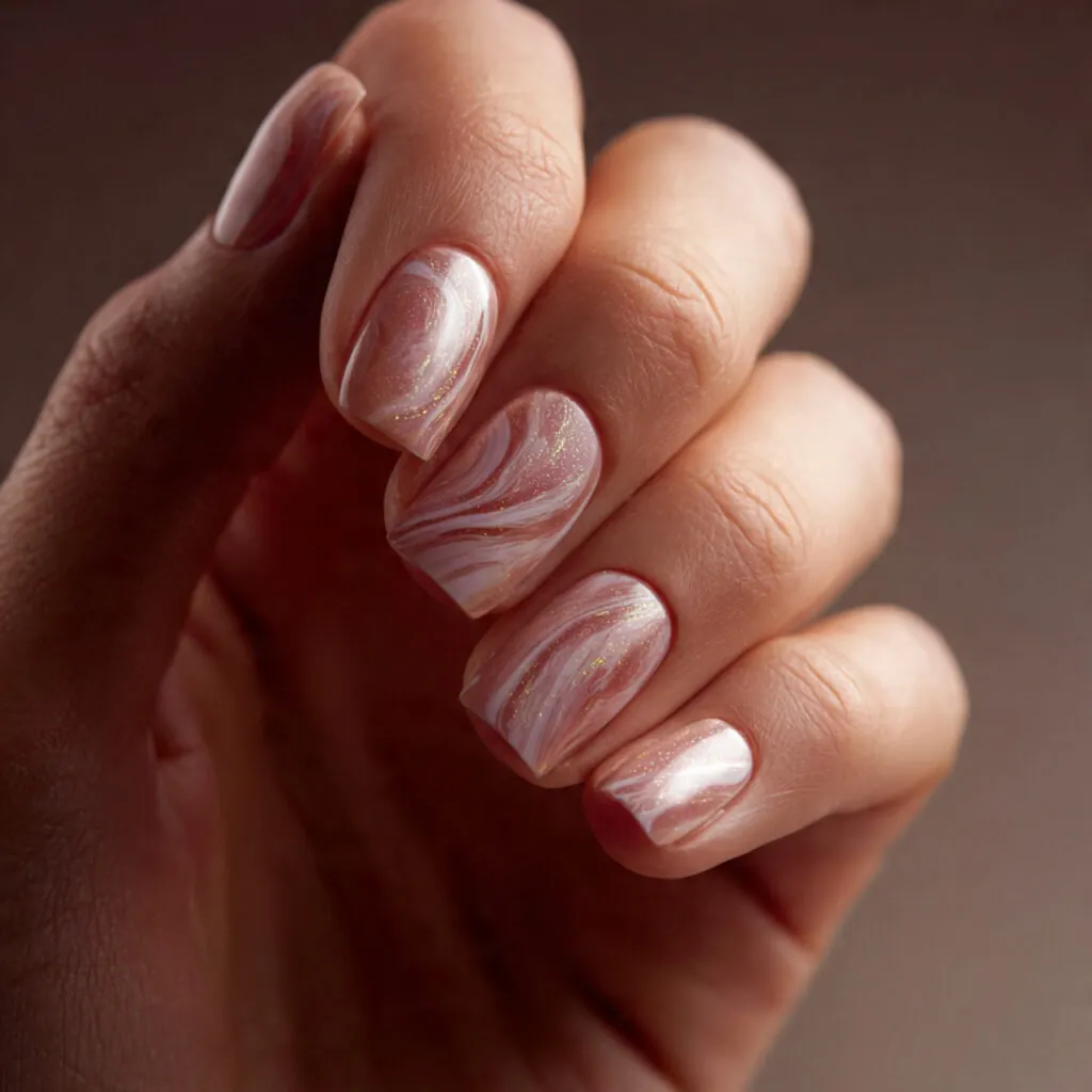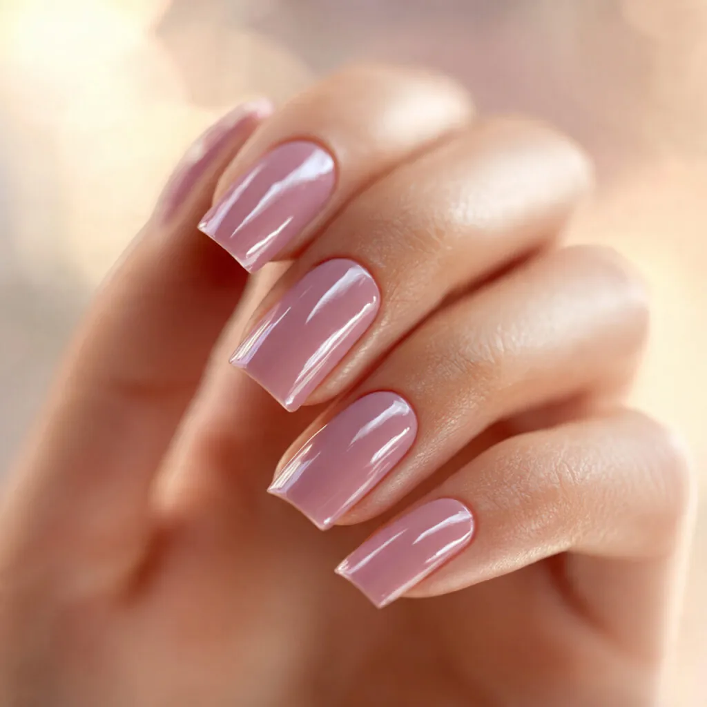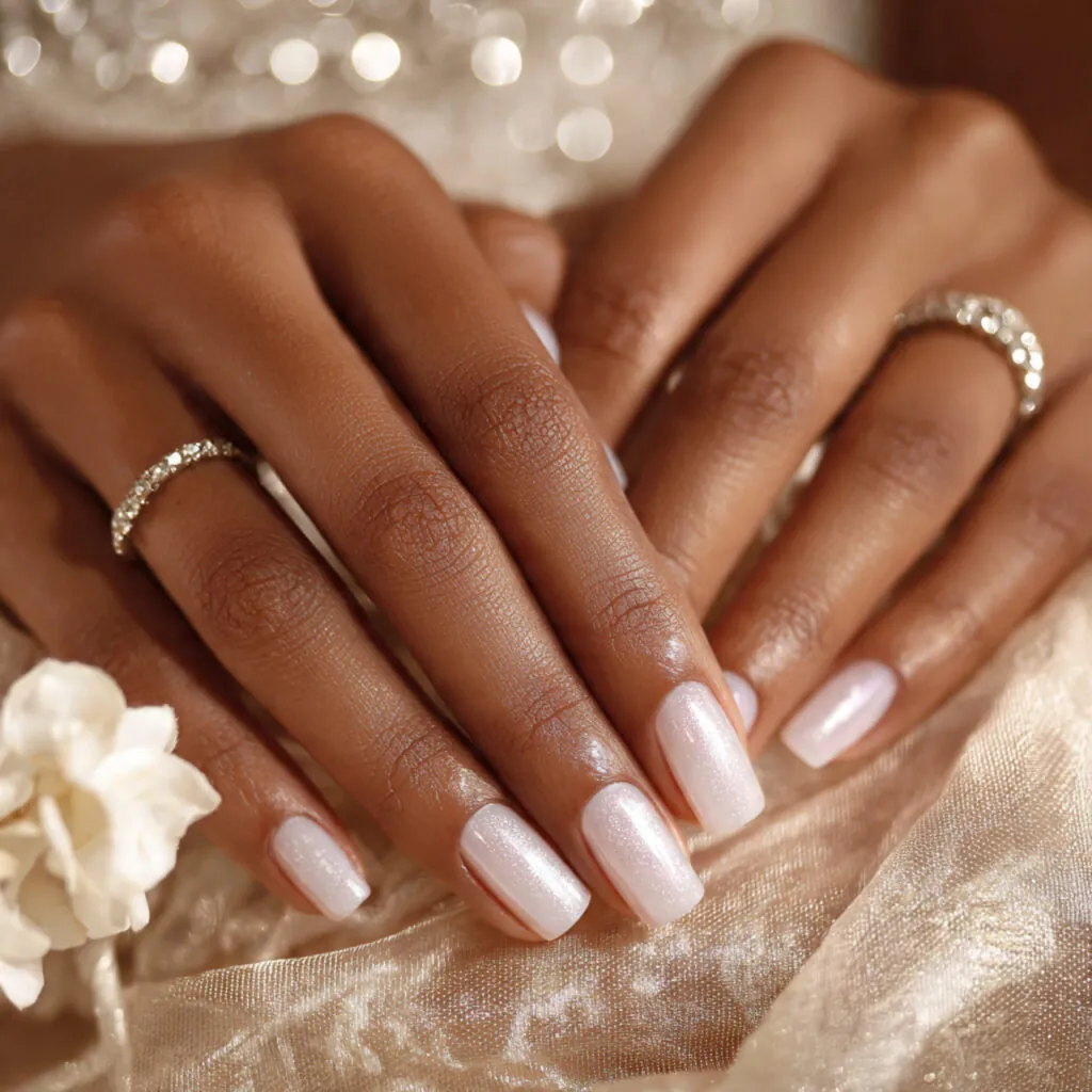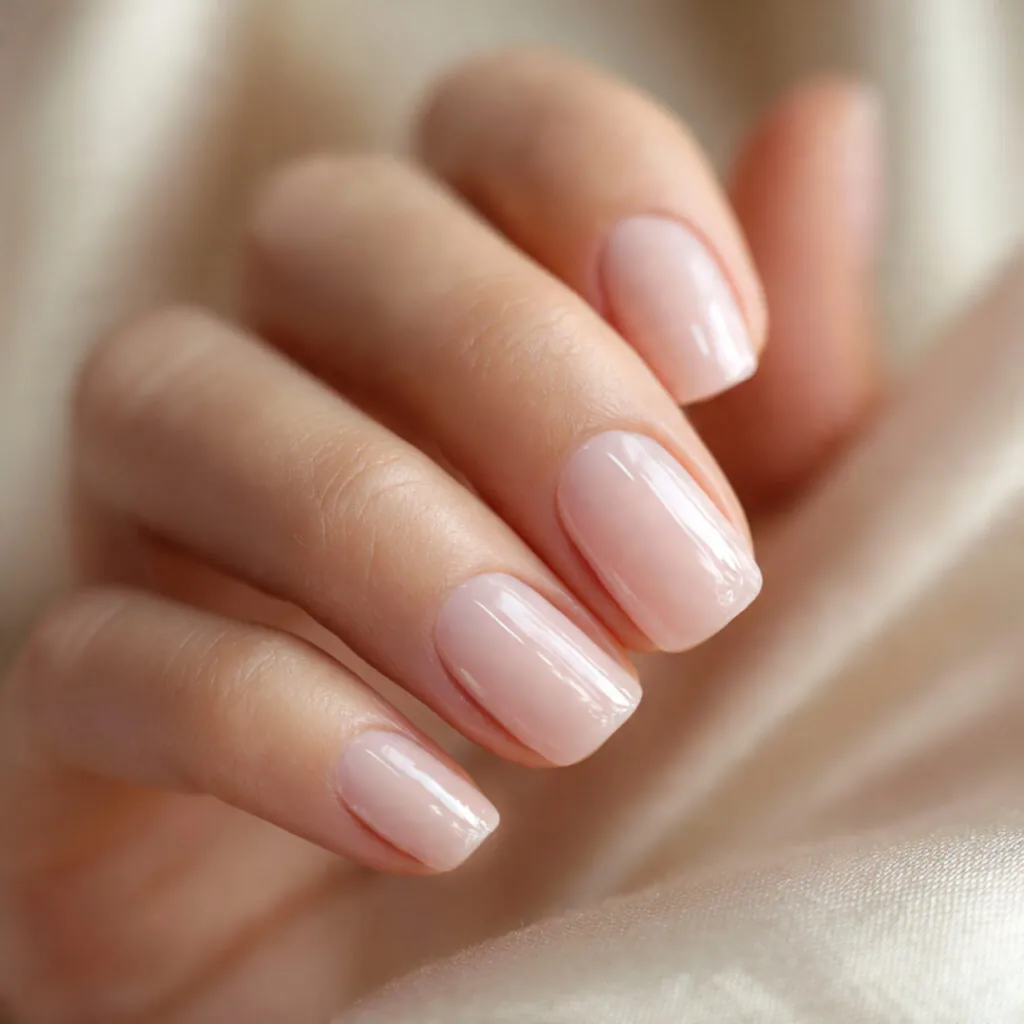 Ever tried a glazed donut finish on short square nails? It looks simple but insanely chic.
