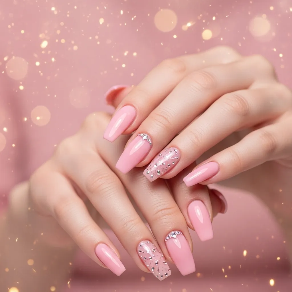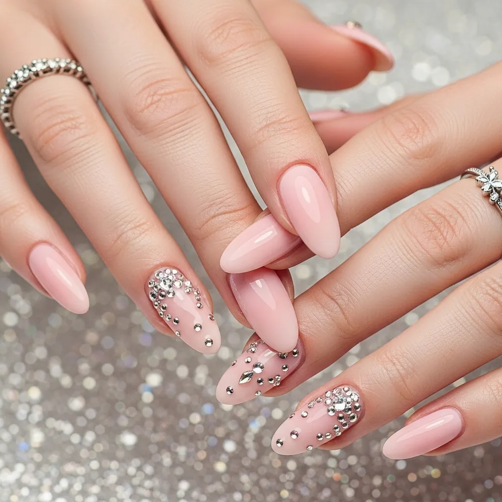 Many people choose accent rhinestones instead of covering every nail.