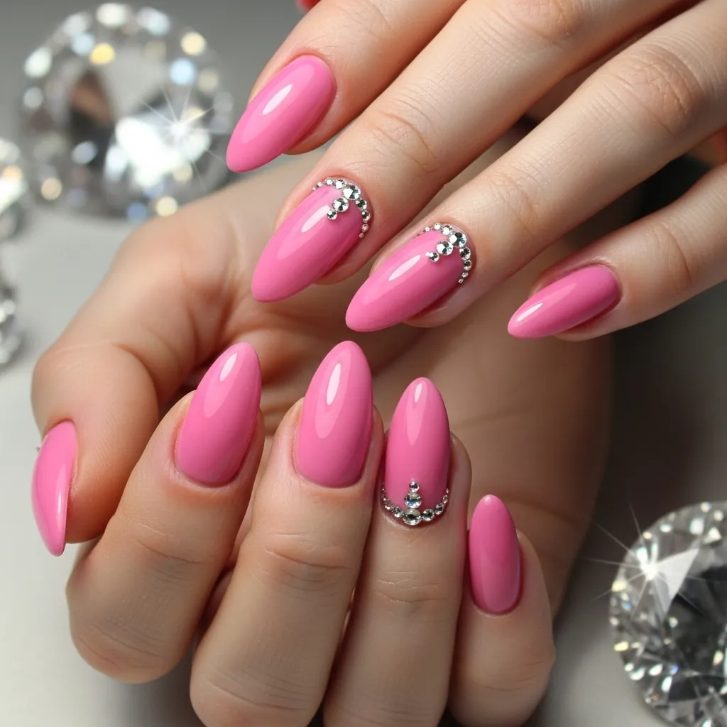 Rhinestones instantly upgrade pink nails.