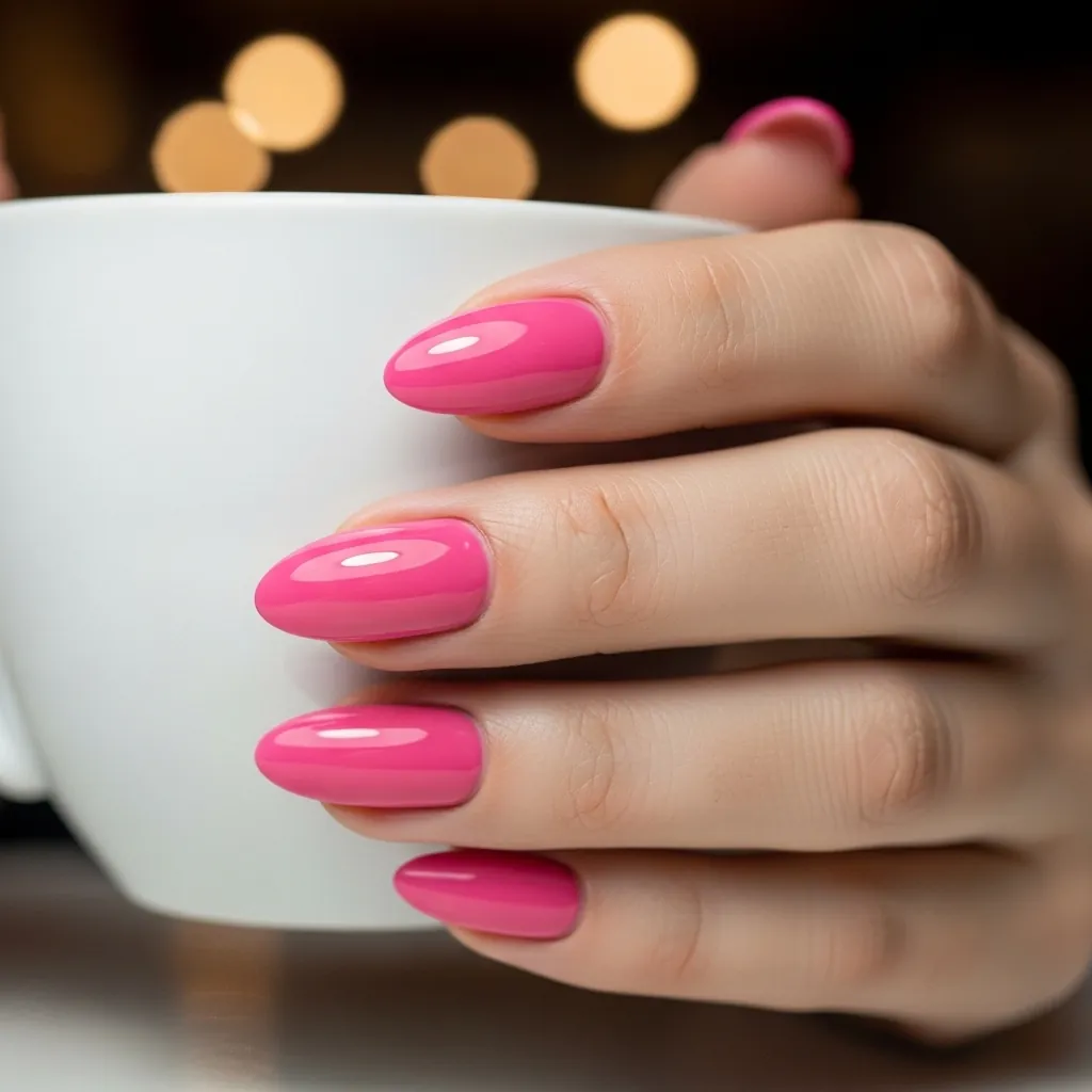 Hot pink nails look amazing in spring sunlight. The color pops in photos and makes your manicure impossible to ignore.