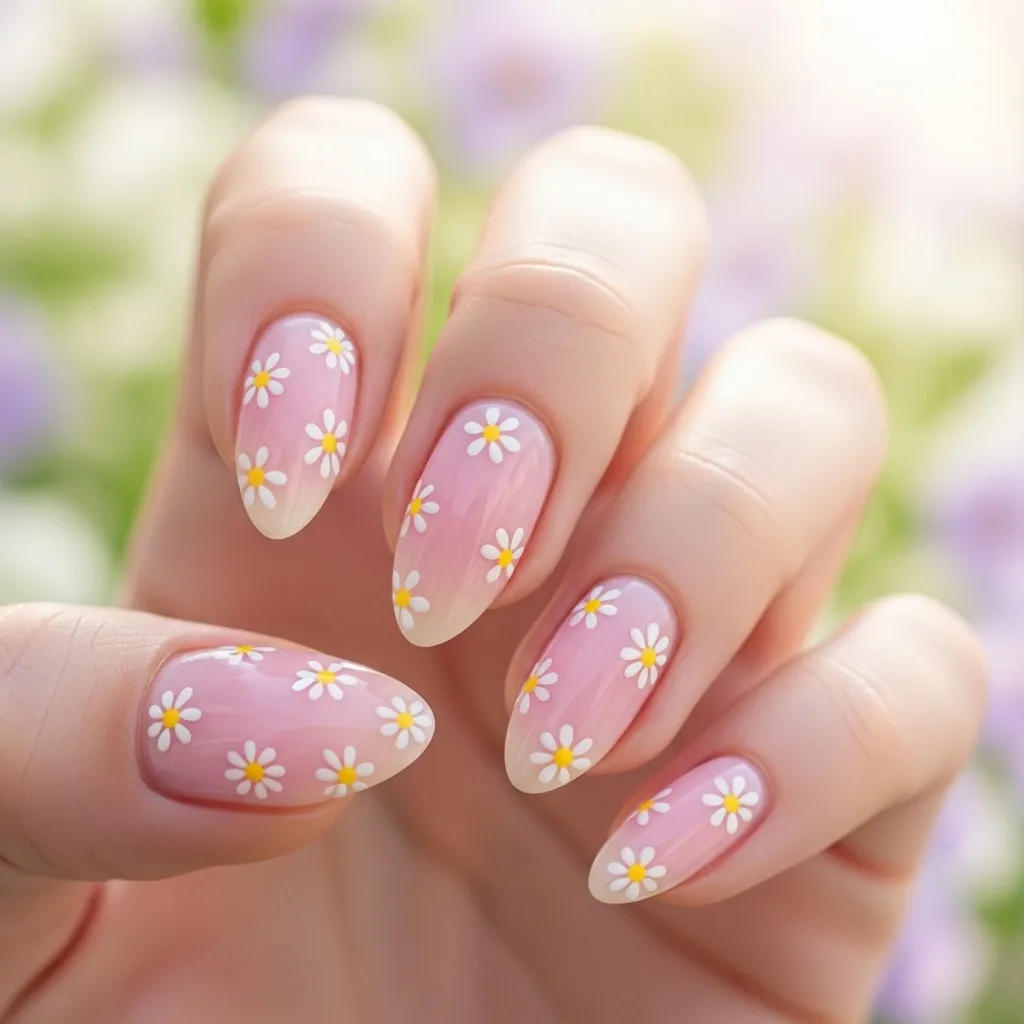 I tried a light pink base with white daisies last spring, and people kept asking where I got them done. Plot twist: I did them myself.