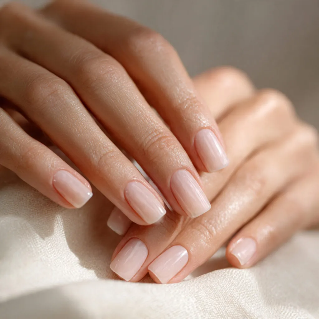 The straight square tip makes nude shades look sharp instead of plain. That structure elevates the simplicity.